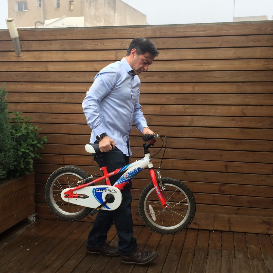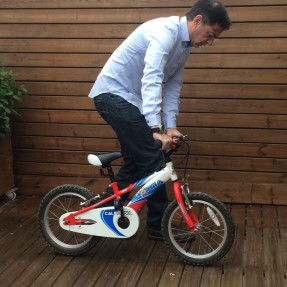 As the bikes small, adults have to bend to take it, obviously, the position of the adult is not a good position because he is uncomfortable, exhausted.
